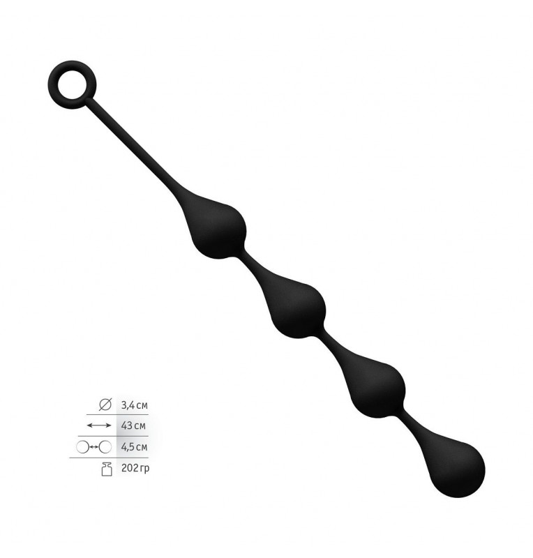 Большая чёрная анальная цепочка с 4 каплями - 43 см.