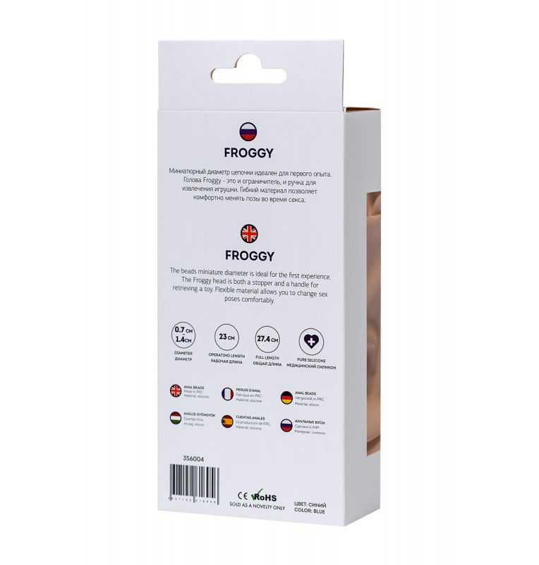 Миниатюрный диаметр цепочки идеален для первого опыта. Голова Froggy — это и ограничитель, и ручка для извлечения игрушки. Гибкий материал позволяет комфортно менять позы во время секса. Рабочая длина - 23 см. Минимальный диаметр - 0,7 см.