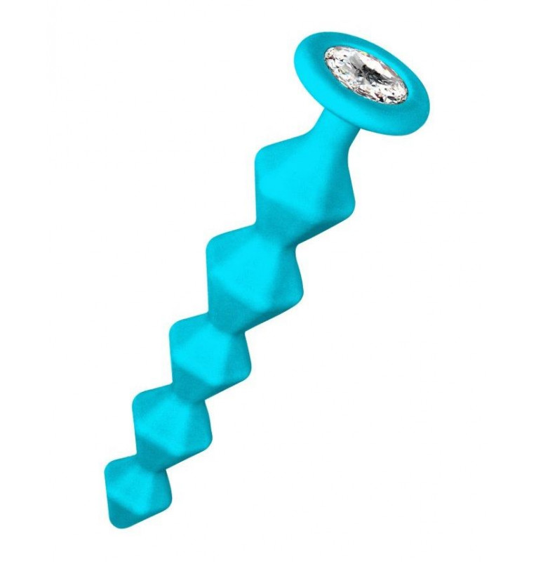 Бирюзовая анальная цепочка с кристаллом Chummy - 16 см.