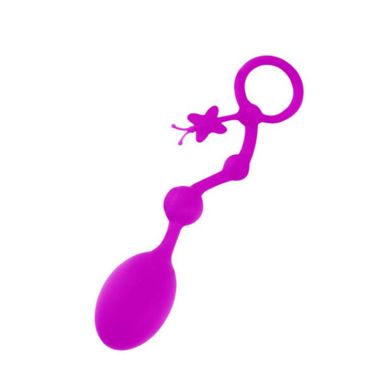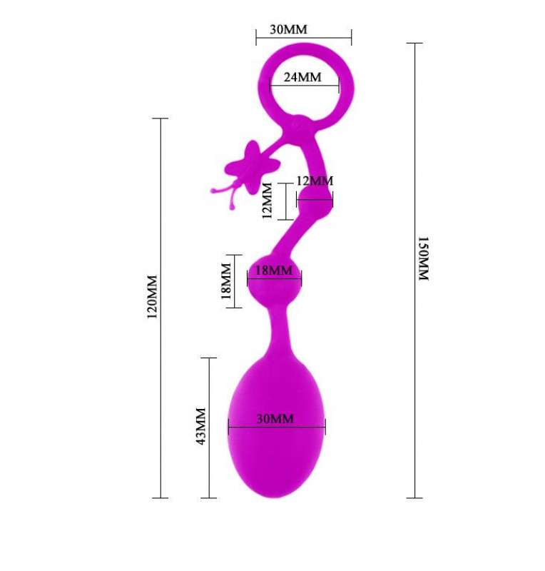 Анальная цепочка , состоящая из яйца и 2 звеньев. Бусины имеют разный диаметр. Удобное кольцо позволяет использовать изделие максимально комфортно и безопасно. Кольцо украшено бабочкой. Материал изготовления - силикон. Игрушка гибкая, не пористая. Рабочая длина - 12 см.