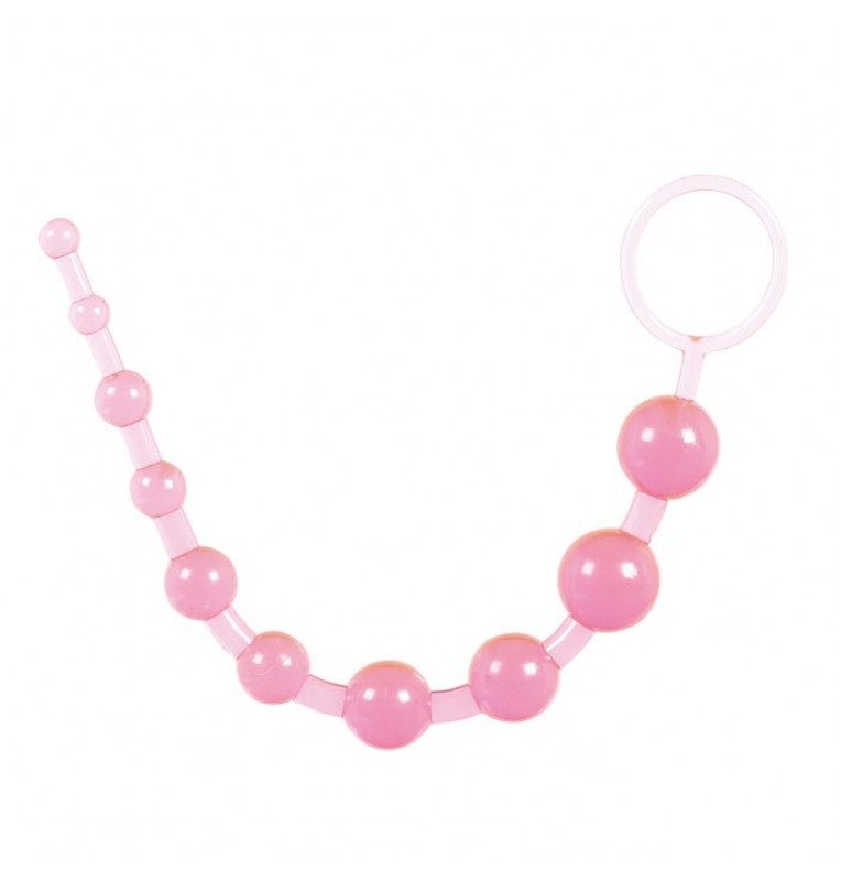 Розовая анальная цепочка из 10 шариков - 25 см.