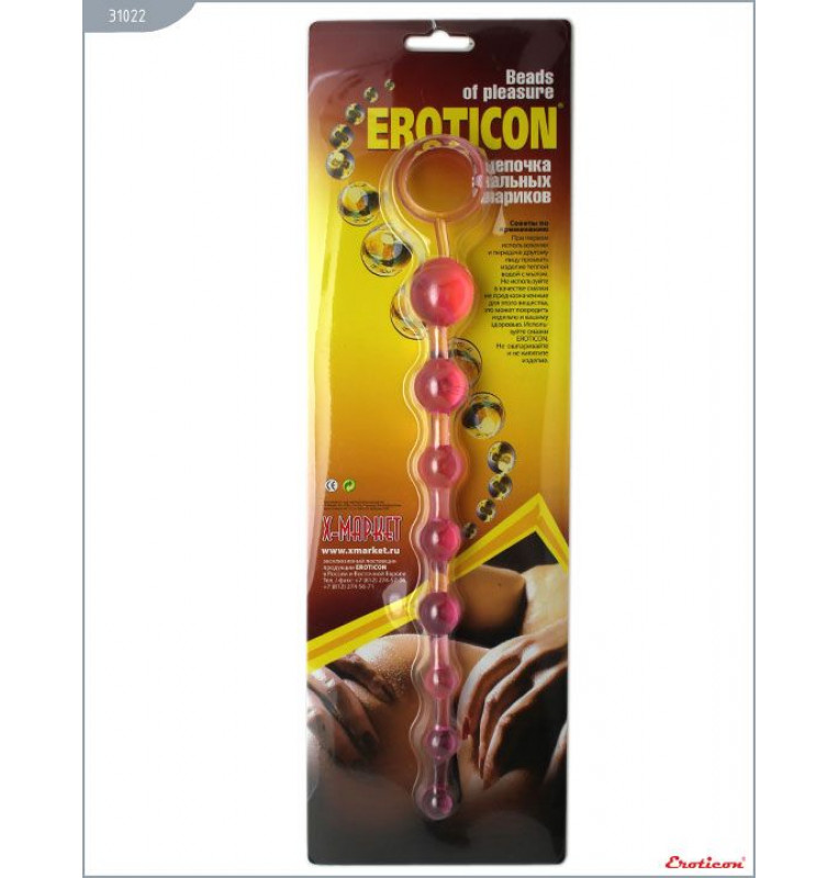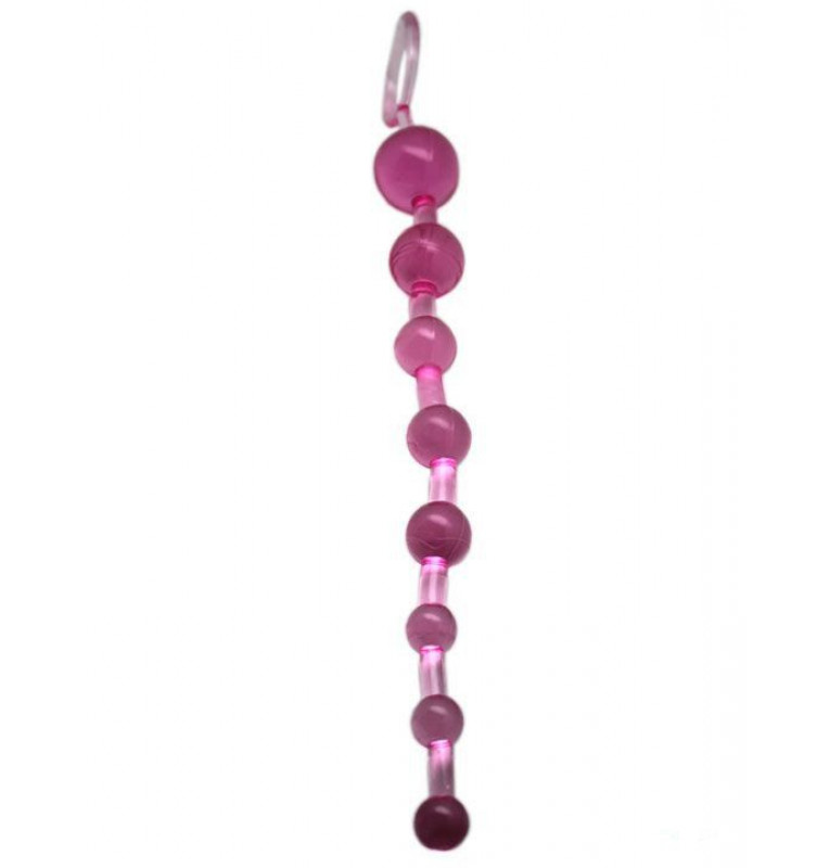 Анальная цепочка на упругой связке из восьми шариков разного диаметра. Цепочка имеет колечко для удобного извлечения. Специальная форма из постепенно увеличивающихся в диаметре шаров обеспечивает лёгкое и комфортное введение стимулятора в анальное отверстие. Благодаря своему размеру шарики подойдут как опытным любителям анальной стимуляции, так и начинающим.