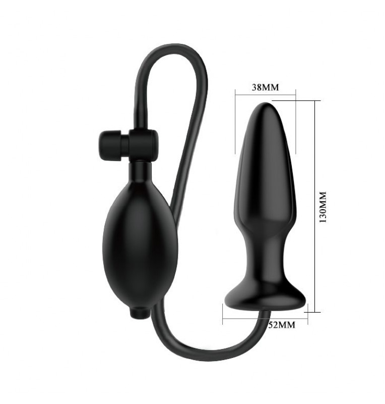 Черная надувная анальная пробка с ручным насосом-грушей для откачки. Быстроразъемный клапан груши насоса быстро сбрасывает давление. Такой девайс подойдет для ценителей анальных тренировок,любителей ощущения наполненности и растяжения, а также практикующих фистинг. Рабочая длина - 11 см.