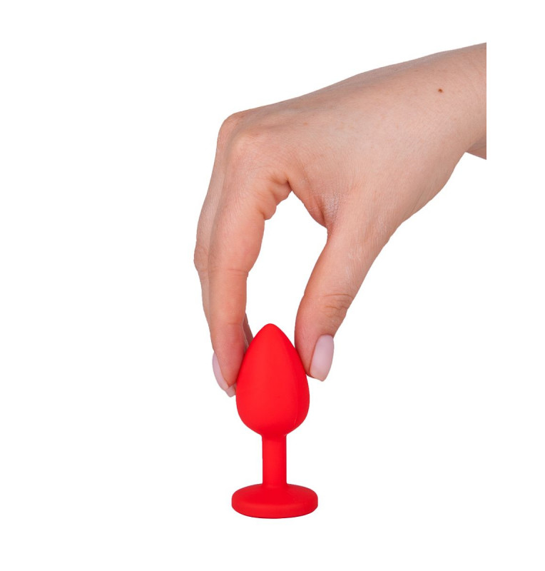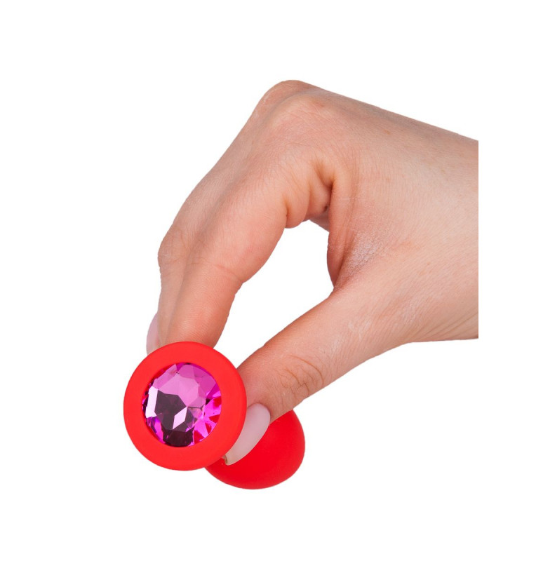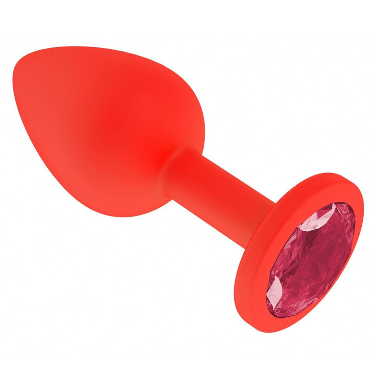 Красная анальная втулка с малиновым кристаллом - 7,3 см.