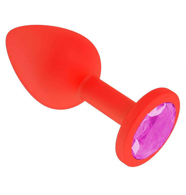 Красная анальная втулка с розовым кристаллом - 7,3 см.