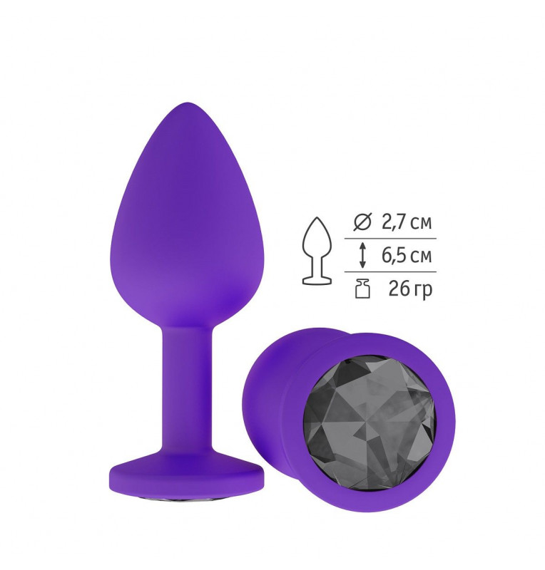 Фиолетовая силиконовая пробка с чёрным кристаллом - 7,3 см.