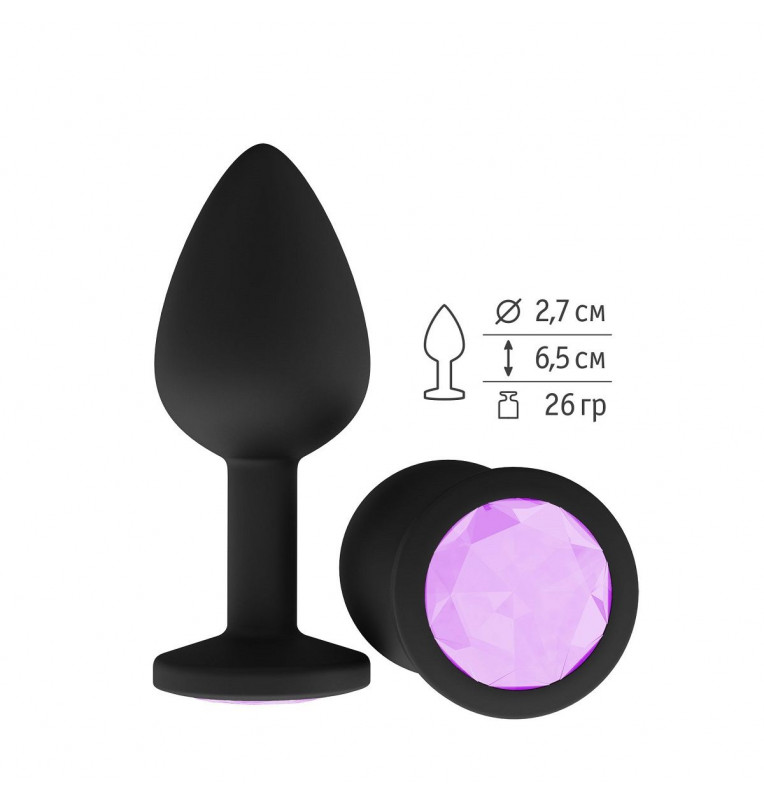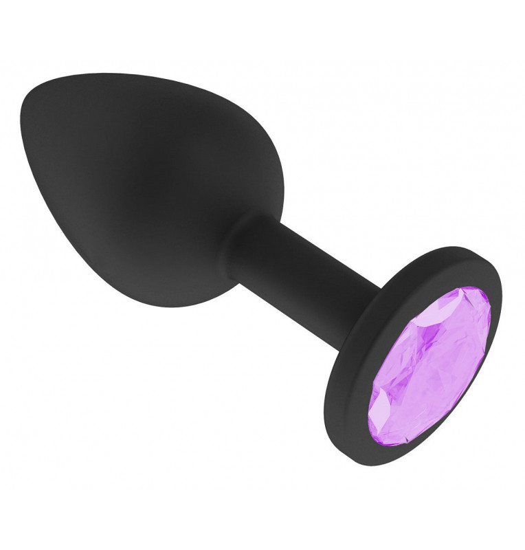Чёрная анальная втулка с сиреневым кристаллом - 7,3 см.