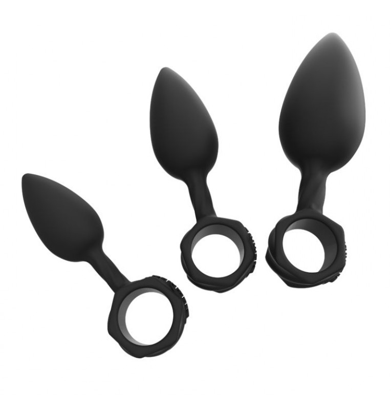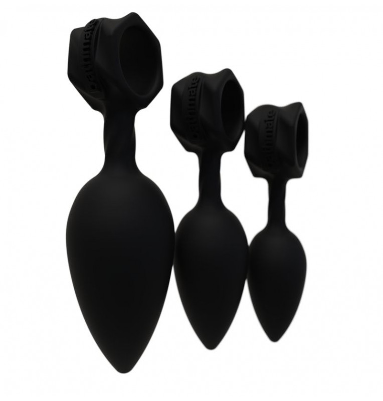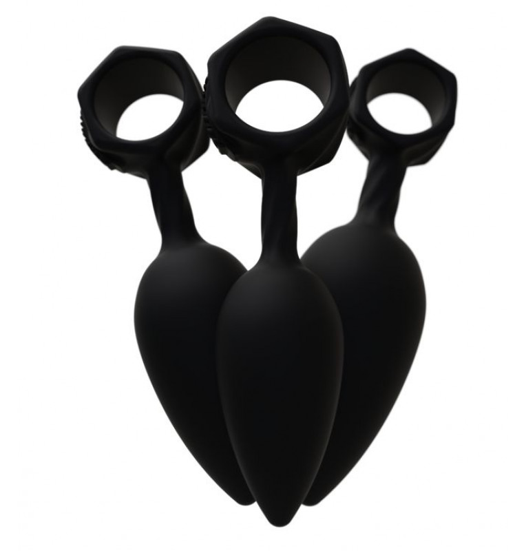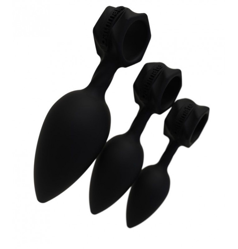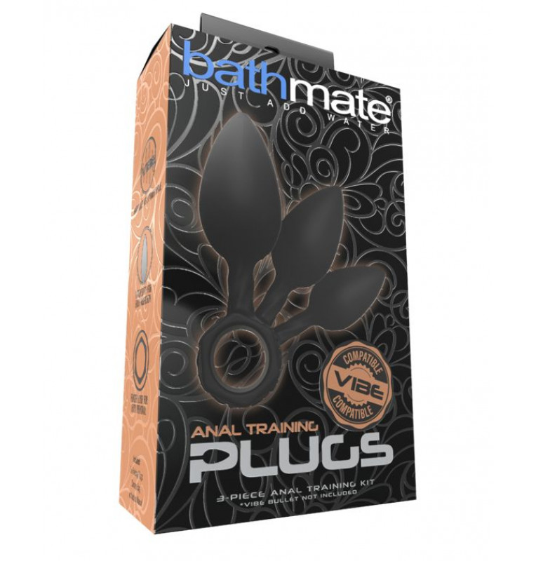 Набор из 3 анальных плагов Bathmate Anal Training Plugs. Эргономичный дизайн для лёгкого введения. Кольцо для удобного извлечения или размещения вибропули Vibe (приобретается отдельно). Материал - гипоаллергенный силикон. Длина большой пробки - 13 см., рабочая длина - 10 см., диаметр - 3,8 см. Длина большой пробки - 11 см., рабочая длина - 8 см., диаметр - 3,1 см. Длина большой пробки - 10 см., рабочая длина - 7 см., диаметр - 2,5 см.