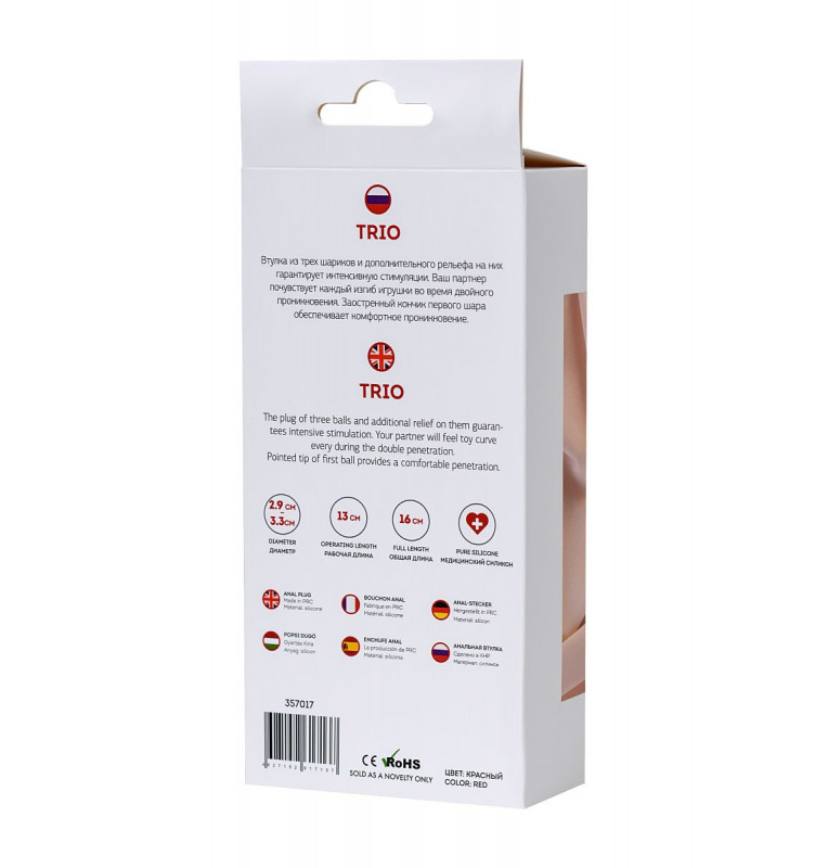Втулка из трех шариков и дополнительного рельефа на них гарантирует интенсивную стимуляцию. Ваш партнер почувствует каждый изгиб игрушки во время двойного проникновения. Заостренный кончик первого шара обеспечивает комфортное проникновение. Рабочая длина - 13 см. Минимальный диаметр - 2,9 см.