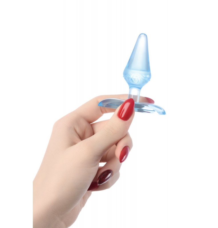 Голубая анальная втулка с ограничителем - 6,5 см.
