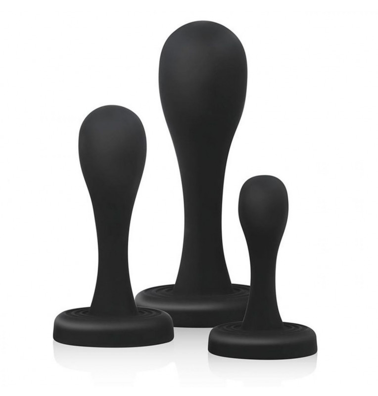 В наборе анальных пробок из силикона входят три модели разной величины. Все пробочки имеют ограничительное основание для безопасного использования, мягкие на ощупь, бархатистые и упругие. Длина малой пробки - 8,5 см., рабочая длина - 7,3 см., диаметр - 2,5 см. Длина средней пробки - 11 см., рабочая длина - 9,8 см., диаметр - 3,2 см. Длина большой пробки - 14 см., рабочая длина - 12,8 см., диаметр - 4 см.