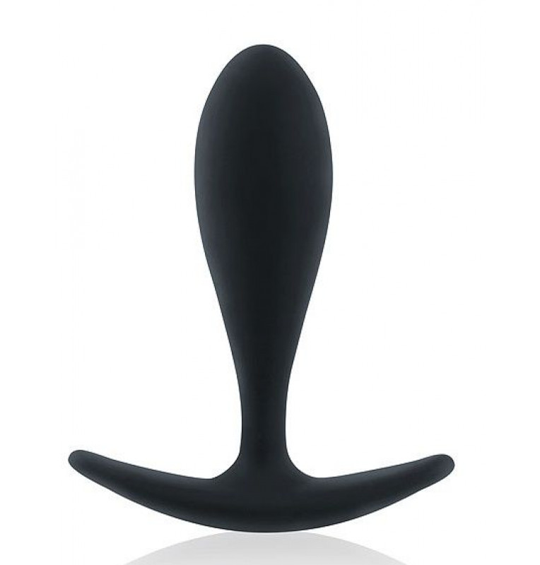 Черная гладкая анальная пробка с ограничительным основанием - 9 см.
