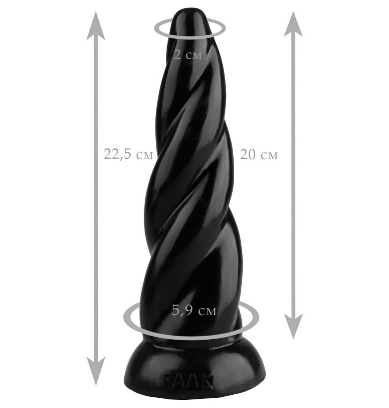Черная коническая спиральная анальная втулка - 22,5 см.