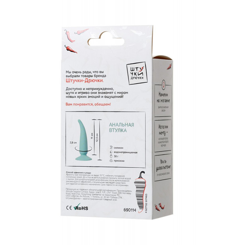 Штучка-проводник в мир анального секса. Подготовка к анальному сексу Имитация третьего партнера Небольшой размер втулки подойдет для новичков в мир другого секса. Нежный материал и зауженный кончик втулки позволяют ей уверенно, но деликатно превратить подготовку к анальному сексу в возбуждающую игру. Мощная присоска позволяет удобно крепить ее к любой поверхности и не ограничивать себя в любовных сценариях. Для чего нужна: Попробовать анальную стимуляцию, подготовиться к другому сексу, исполнить тайное желание о сексе втроем – с ней все возможно! С анальной втулкой Штучки-Дрючки незабываемое удовольствие гарантировано. Рабочая длина - 11 см.