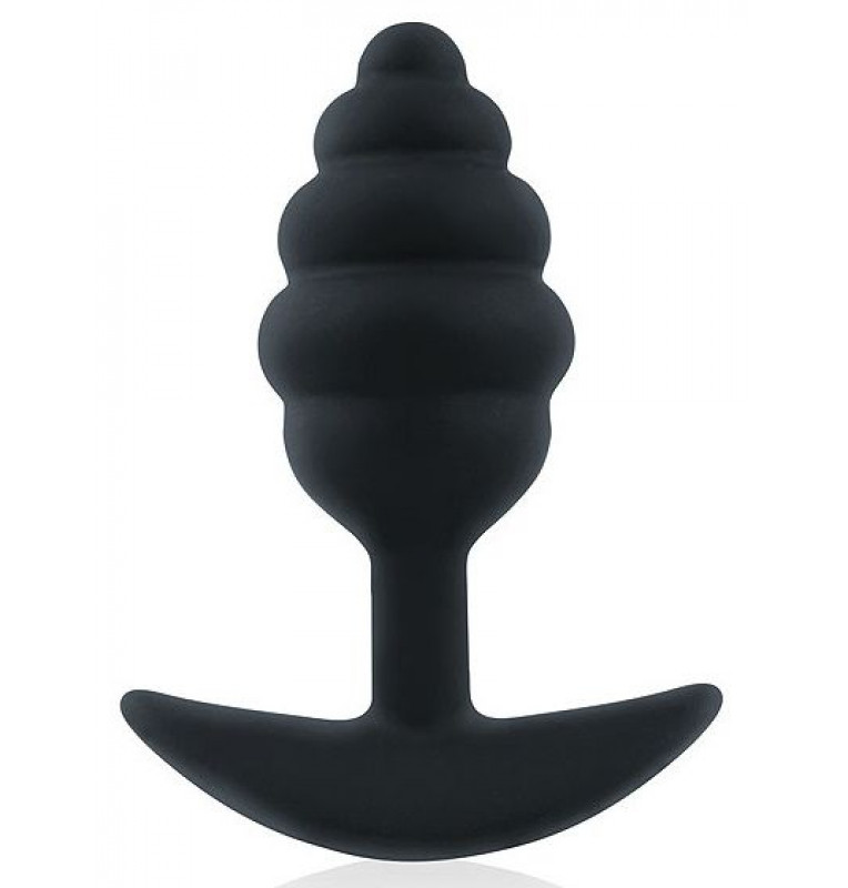 Черная ребристая анальная втулка с ограничителем - 9 см.