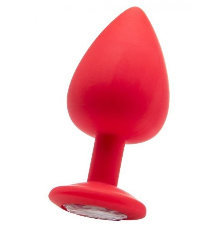 Красная анальная пробка OUCH! Extra Large Diamond Butt Plug с кристаллом. Выполнена из нежнейшего силикона, гибкая в перешейке. Рабочая длина - 8 см.