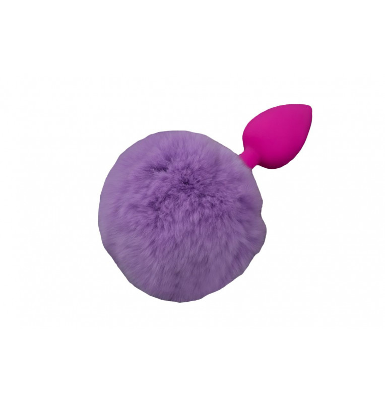 Маленькая розовая силиконовая пробка с пушистым фиолетовым хвостиком