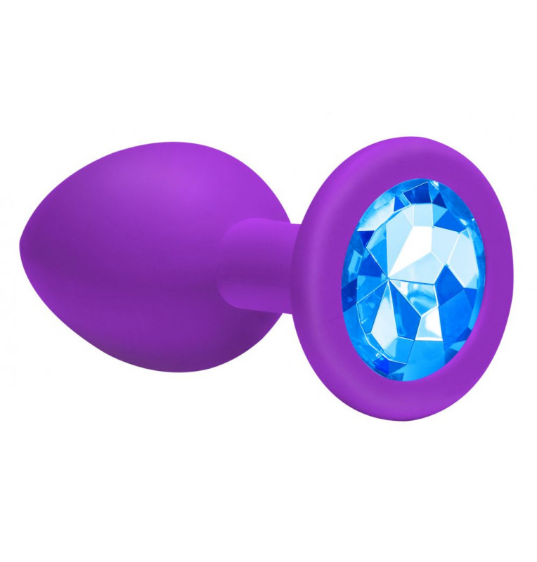Большая фиолетовая анальная пробка Emotions Cutie Large с голубым кристаллом - 10 см.