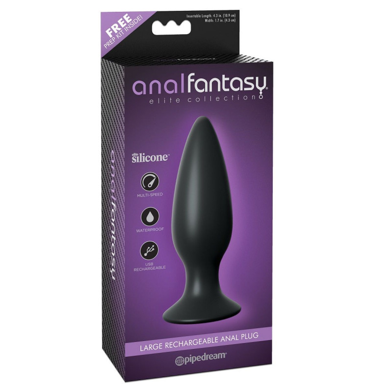 Чёрная большая анальная вибропробка Large Rechargeable Anal Plug. Перезаряжаемая. Рабочая длина - 10,9 см.
