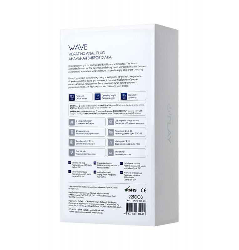 Wave подготовит к анальному сексу и выступит в качестве стимулятора. Форма комфортна даже для новичка. Волнообразная форма и сильные глубокие вибрации впечатлят самых искушенных. Беспроводной пульт дистанционного управления позволит наслаждаться игрой соло или в паре. 12 режимов вибрации. Беспроводное дистанционное управление на расстоянии до 3 метров. Медицинский силикон. Магнитная USB зарядка (в комплекте). Низкий уровень шума (не более 50 dB). Водонепроницаемость IPX6. Мощная присоска. Рабочая длина - 12 см. Минимальный диаметр - 1,8 см. Пульт работает от 1 батарейки типа CR2032.