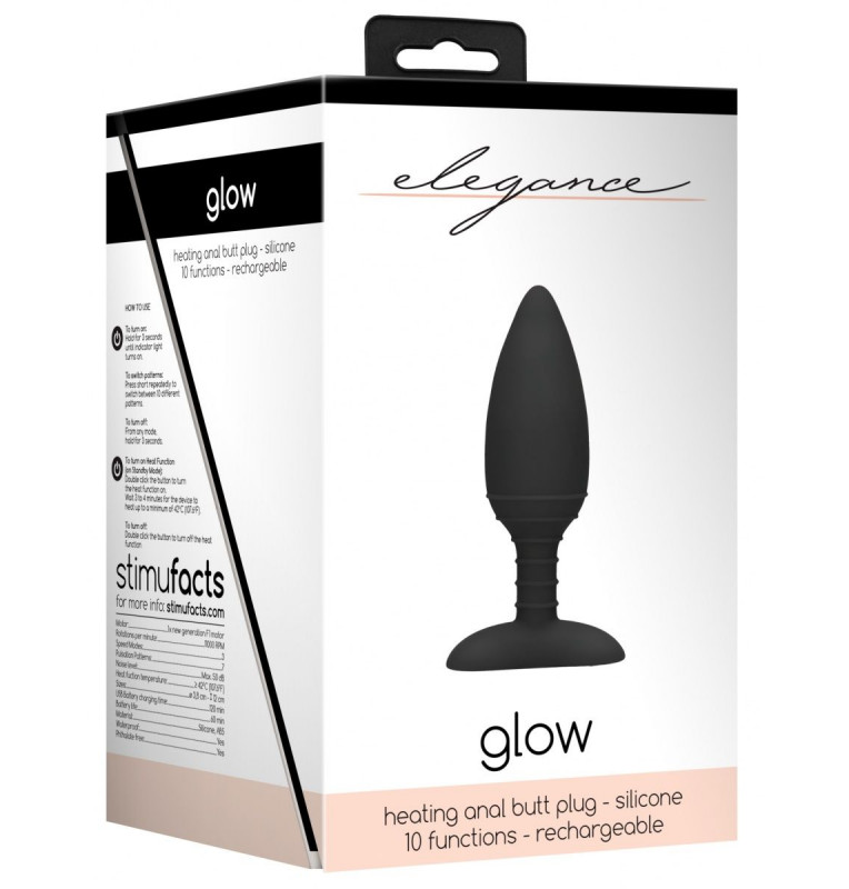 Для тех, кто любит ощущение заполненности, большая вибрирующая и согревающая перезаряжаемая анальная пробка Glow является идеальным дополнением. Glow сделана из медицинского силикона и имеет на стволе стимулирующие грани для усиления вашего впечатления. 10 уникальных функций вибрации. Эта анальная игрушка имеет функцию нагрева, которая позволяет вам нагреть ее до приятных 42 градусов Цельсия.