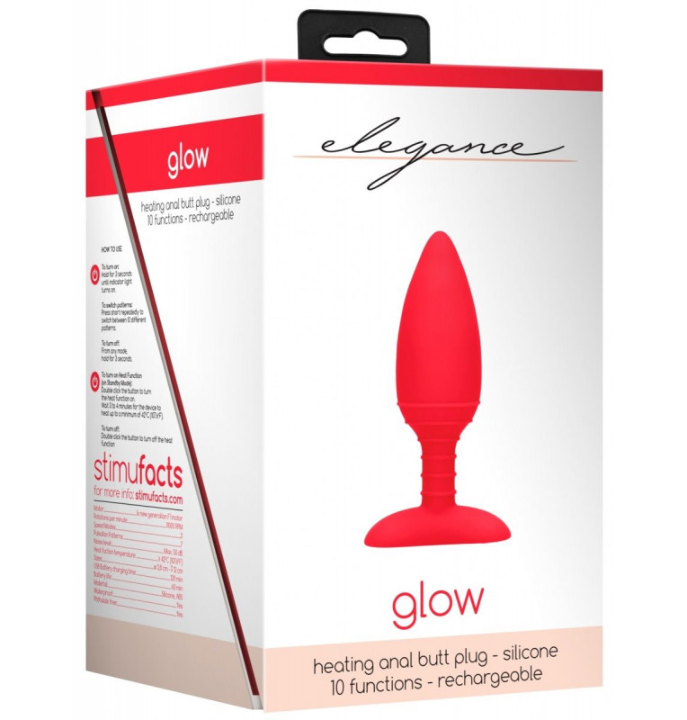 Для тех, кто любит ощущение заполненности, большая вибрирующая и согревающая перезаряжаемая анальная пробка Glow является идеальным дополнением. Glow сделана из медицинского силикона и имеет на стволе стимулирующие грани для усиления вашего впечатления. 10 уникальных функций вибрации. Эта анальная игрушка имеет функцию нагрева, которая позволяет вам нагреть ее до приятных 42 градусов Цельсия.