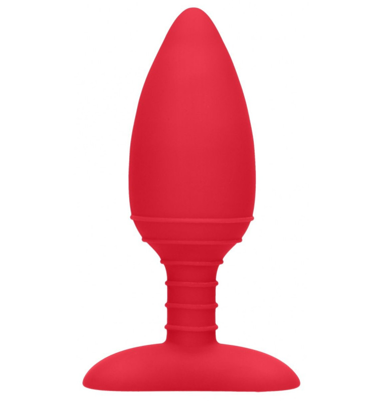 Красная анальная пробка Glow с вибрацией и подогревом - 12 см.