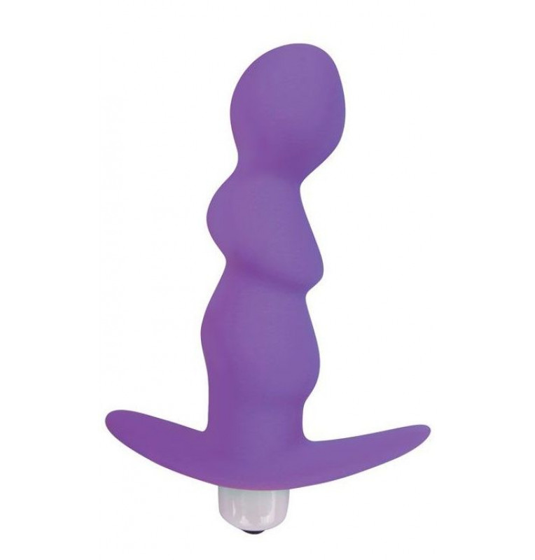 Фиолетовый рельефный вибромассажер с ограничителем - 9,5 см.