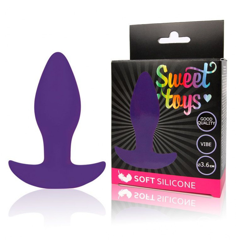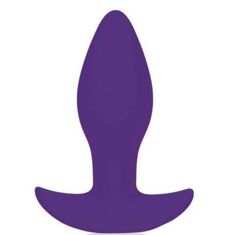 Фиолетовая коническая анальная вибровтулка с ограничителем - 8,5 см.