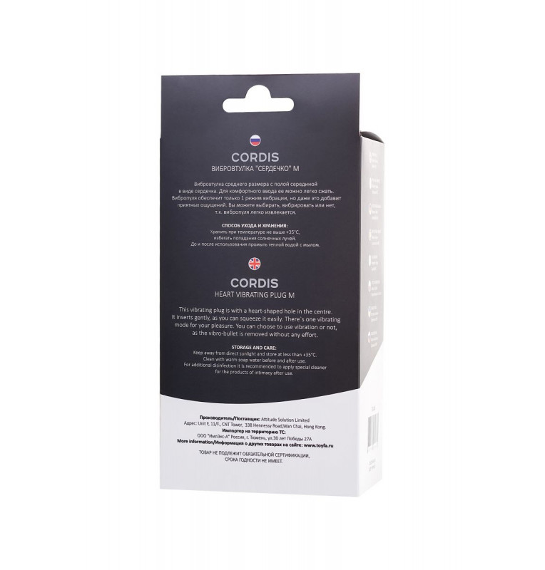 Вибровтулка среднего размера с полой серединой в виде сердечка. Для комфортного ввода ее можно легко сжать. Вибропуля обеспечит 7 режимов вибрации, что добавит приятных ощущений. Вы можете выбирать, вибрировать или нет, т.к. вибропуля легко извлекается.