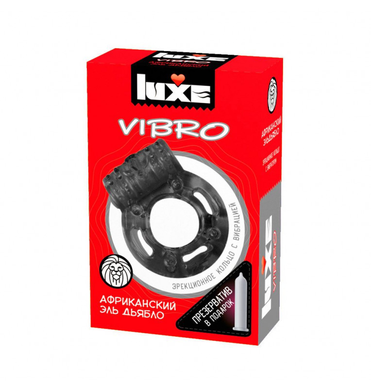 Чёрное эрекционное виброкольцо Luxe VIBRO Африканский Эль Дьябло + презерватив