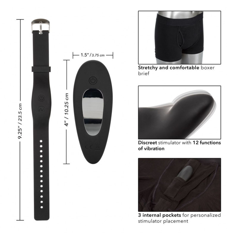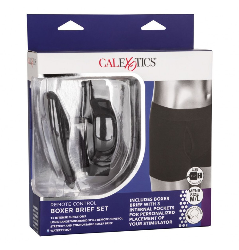Remote Control Panty Set - это сексуальный комплект, который включает в себя очень удобные трусы-боксеры в сочетании с мощным мини-вибратором и незаметным компактным пультом дистанционного управления в виде браслета с радиусом действия 10 м. Стимулятор имеет 12 интенсивных функций вибрации. Сдержанные, облегающие боксеры имеют 3 внутренних кармана для индивидуального размещения стимулятора. Эти боксеры, созданы для максимального комфорта и продолжительного ношения, изготовлены из мягкой эластичной ткани с очень широким поясом. Управление стимулятором осуществляется с помощью пульта. Для активации/дезактивации нажмите кнопку на стимуляторе и удерживайте 3 секунды, пока не появится красный мигающий огонек. На пульте так же нажимаем «XO» и удерживаем до того момента, как появиться вибрация на стимуляторе. Игрушка может быть использована как вместе с пультом, так и сама по себе. Массажер заряжается через специальный аккумуляторный USB-кабель и может быть подключен практически в любом месте. Просто подсоедините идущий в комплекте шнур к изделию и совместимому порту компьютера или USB-адаптера (приобретается отдельно). Полная зарядка занимает 60 минут, ее достаточно для беспрерывной работы до 45 минут стимуляции. Размер трусов - M/L.