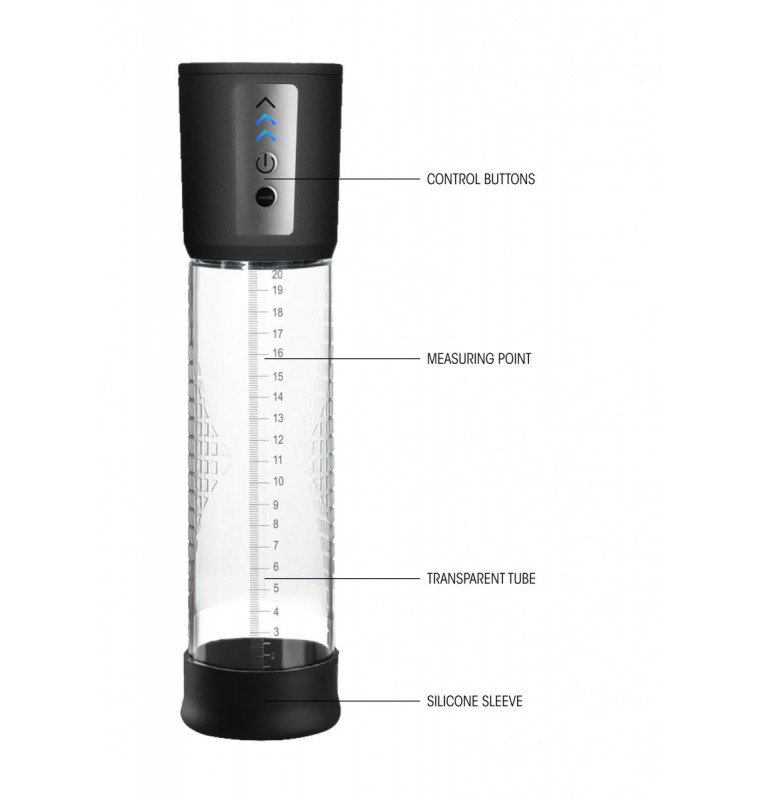 Premium Automatic Pump- автоматическая вакуумная помпа на батарейках. Клинические исследования доказали, что вакуумные устройства обеспечивают более твердую эрекцию, а также при регулярном использовании увеличение полового органа. Согласно Американской урологической ассоциации, они могут быть также полезны в случаях, когда не помогли препараты на основе фосфодиэстеразы 5 типа, такие как виагра. Вакуумная помпа является безопасным и эффективным методом для профилактики эректильной дисфункции. Для получения максимального эффекта использование помпы должно быть регулярным. Будьте аккуратны и внимательны при работе с вакуумом. Автоматическое управление и мягкая прочная втулка предназначены для создания идеального уплотнения и мощного всасывания. Для быстрого и мгновенного сброса давления есть кнопка предохранительного клапана, так что никаких сюрпризов не будет! Рабочая длина - 25 см.