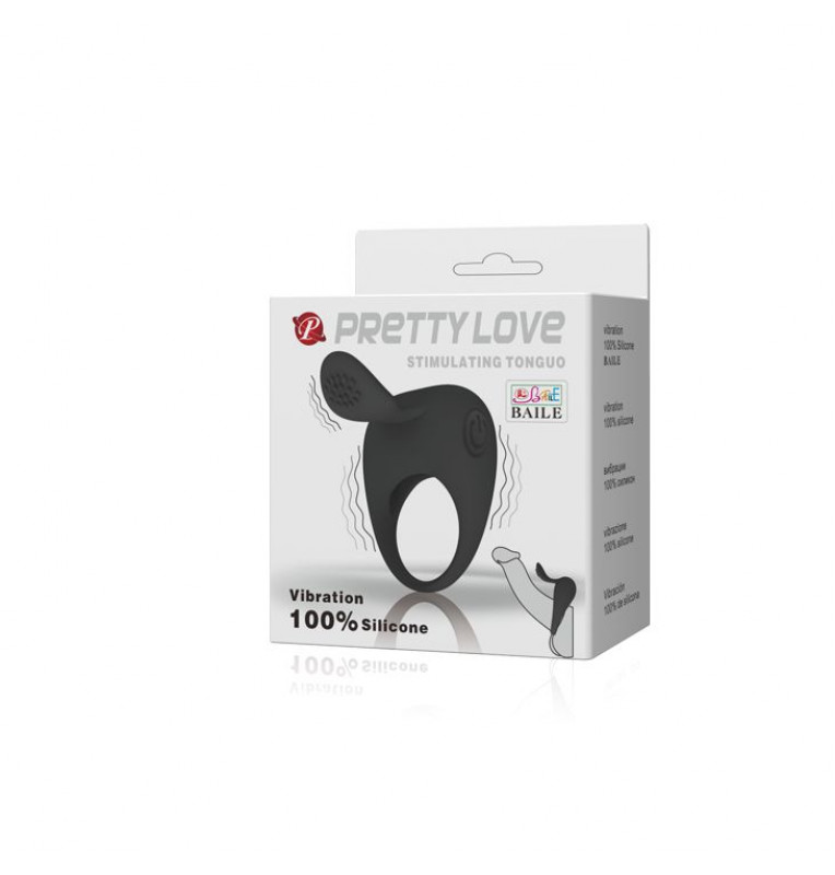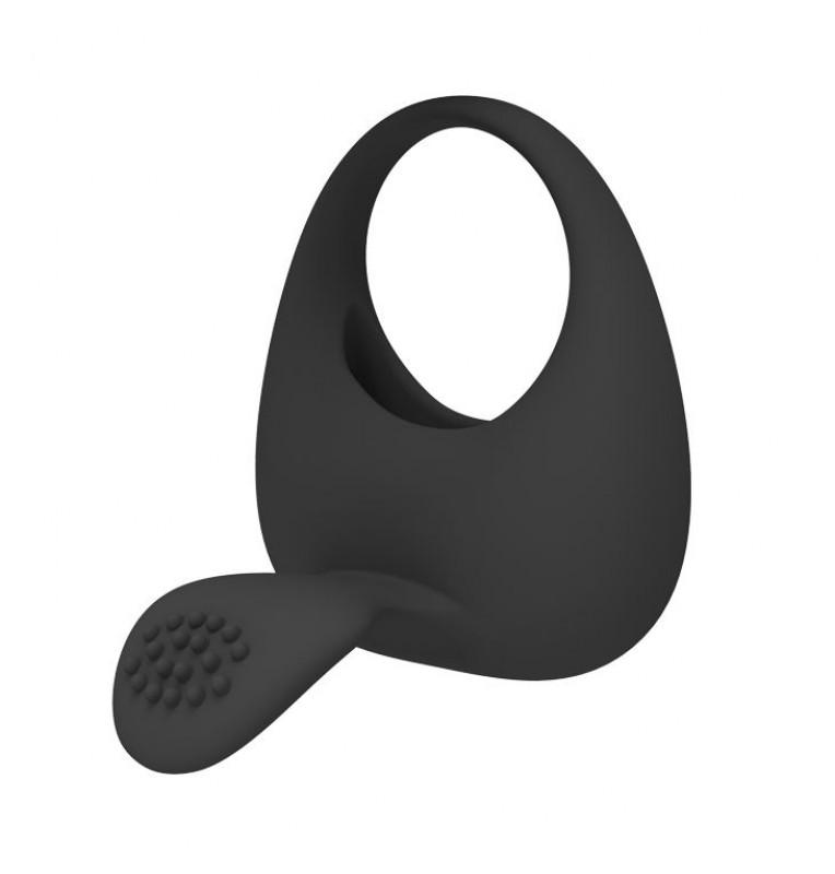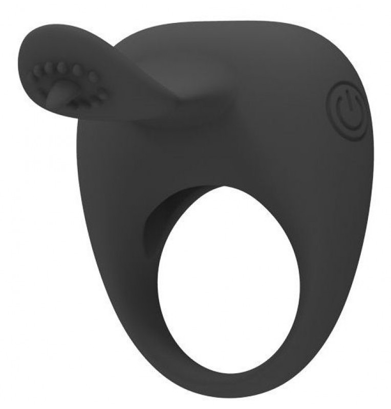 Чёрное эрекционное кольцо с вибрацией и клиторальным язычком
