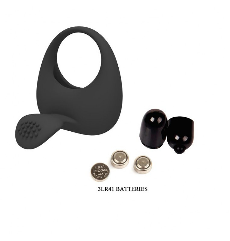 Чёрное эрекционное кольцо с вибрацией и клиторальным язычком. Батарейки в комплекте (3 х LR41), Внутренний диаметр - 3,1 см. Ширина - 5 см.