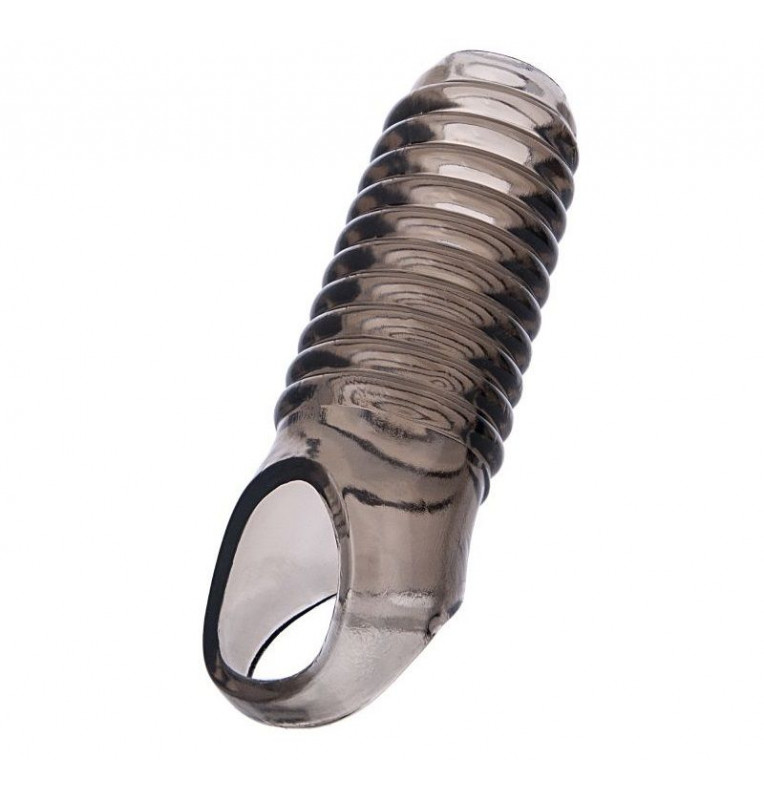 Дымчатая насадка с рёбрышками и подхватом мошонки ToyFa XLover - 12,5 см.