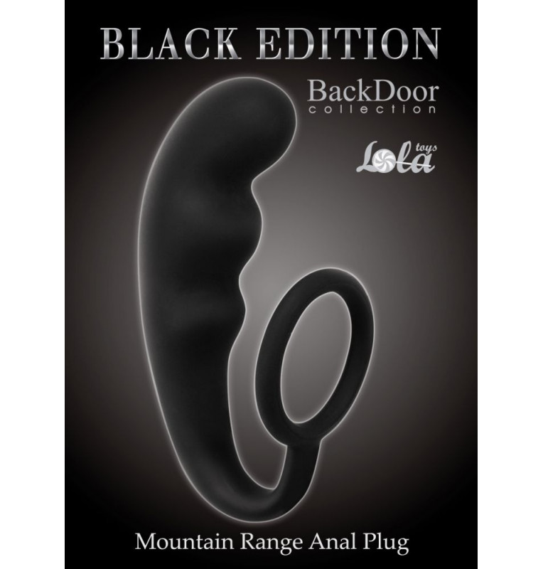 Чёрное эрекционное кольцо с анальным стимулятором Mountain Range Anal Plug