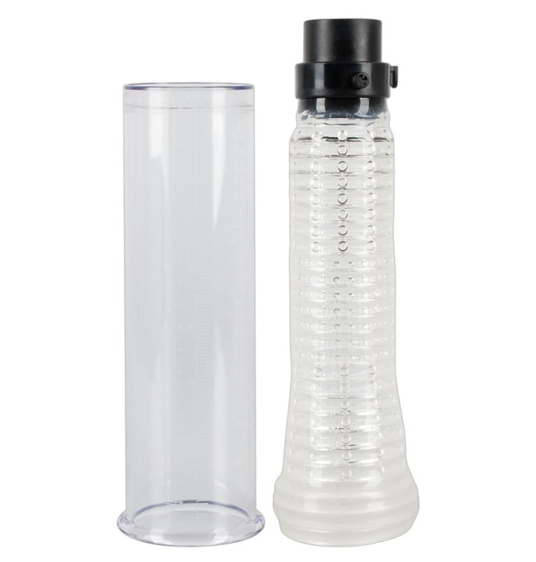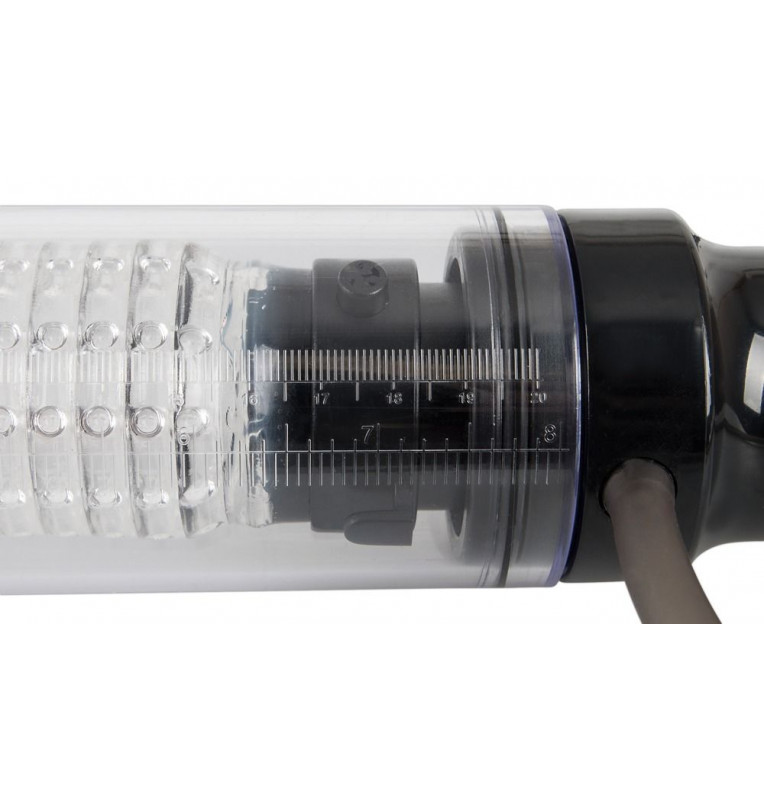 Вакуумная помпа и мастурбатор - два в одном. В зависимости от того, как трубка на цилиндре прикреплена к насосу, воздух может быть выкачен из помпы (для создания эффективного вакуума для тренировки пениса) или протекать внутри, создавая эффект всасывания (мастурбатор). С многоскоростными вибрациями. Рабочая длина - 16,5 см.