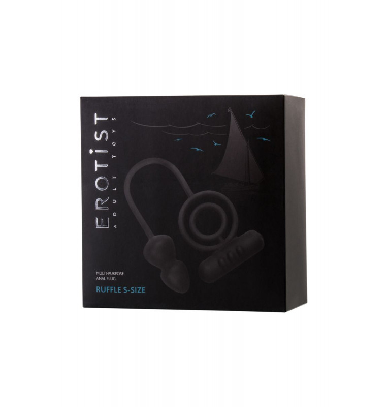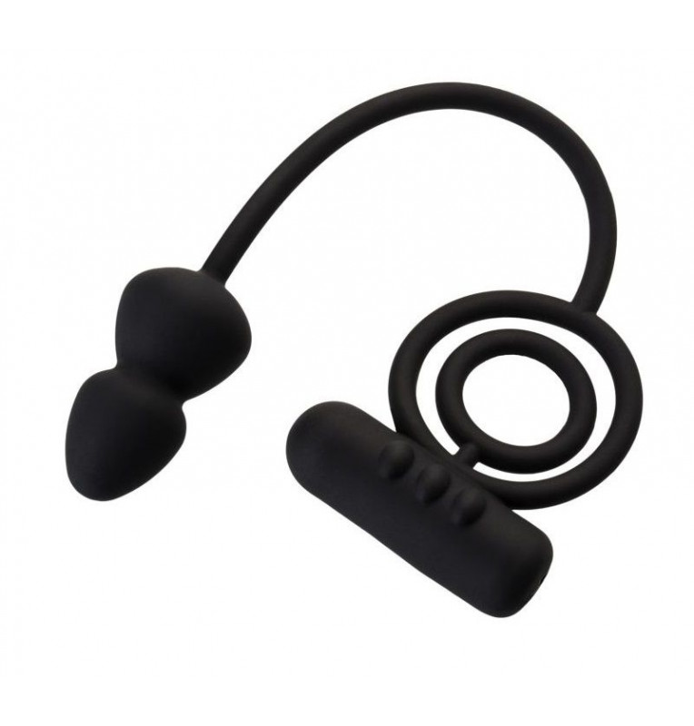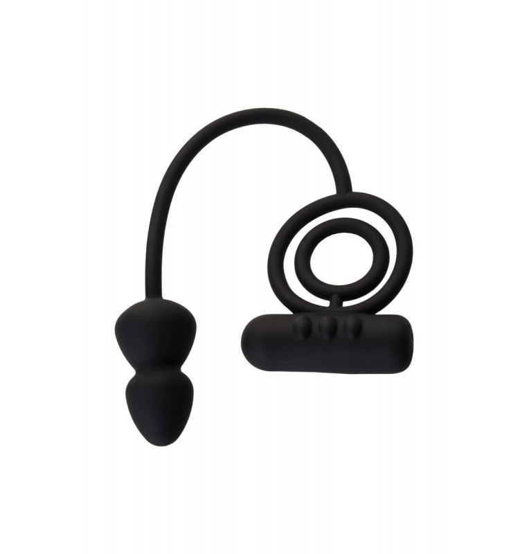 Чёрное эрекционное кольцо с вибропулькой и анальным хвостом
