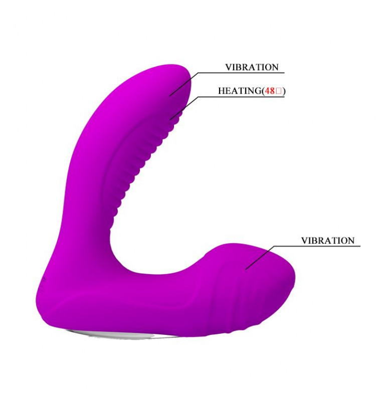 Лиловый массажер простаты с вибрацией и функцией нагрева. Вибрация как в рабочей части, так и в основании - для воздействия на мошонку. 12 режимов вибрации. Нагрев до 48 градусов. Рабочая длина - 9 см.