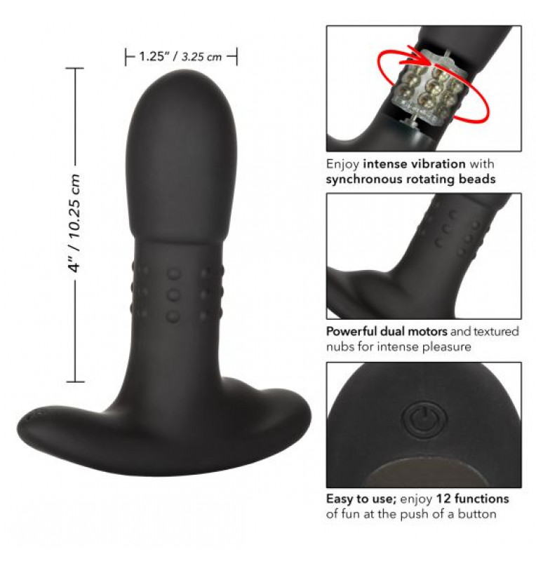 Eclipse Beaded Probe - перезаряжаемый стимулятор для воздействия на нервные окончания ануса с функцией памяти. Два мощных мотора анального стимулятора обеспечивает 12 вариантов интенсивной вибрации и синхронизированной ротации шариков. Эргономичный дизайн обеспечит максимально удобное и комфортное использование. А вращающиеся внутри шарики не только обеспечат интенсивную стимуляцию, но и подарят незабываемые ощущения. Стимулятор оснащен гладкой подставкой в форме треугольника, что не дает ему выпасть или, наоборот, провалиться внутрь прямой кишки и делает его подходящим для ношения. Гигиеничный силикон высшего качества обеспечит удивительно приятные и гарантировано безопасные тактильные ощущения. Для комфортности введения и получения максимально приятных ощущений рекомендуем использовать смазку на водной основе или гибрид. Рабочая длина - 10,25 см.