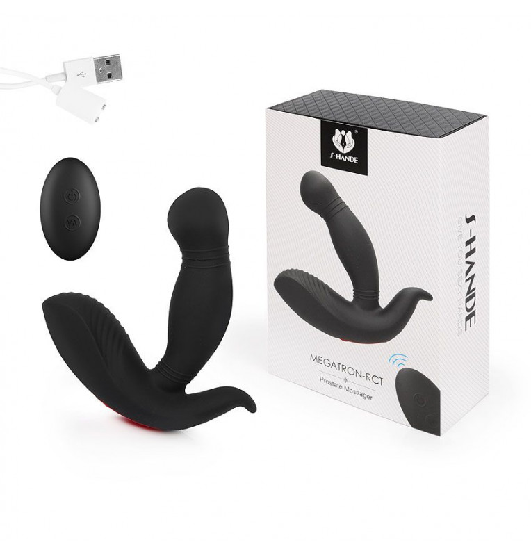 Черный вибростимулятор простаты MEGATRON-RCT. Имеет 9 режимов вибрации. Управлять функционалом можно при помощи пульта ДУ. Рабочая длина - 9,7 см.