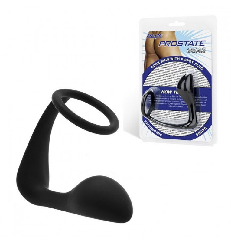 Стимулятор простаты с фиксацией эрекционным кольцом Prostate Gear