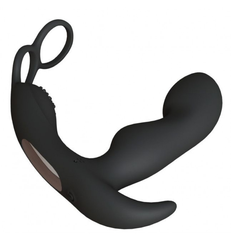 Черный вибромассажер простаты Taurus с эрекционным кольцом