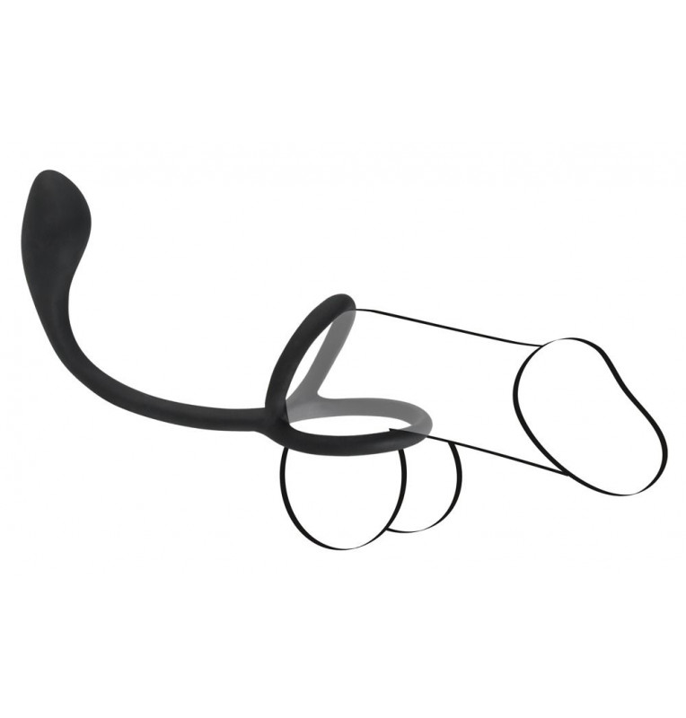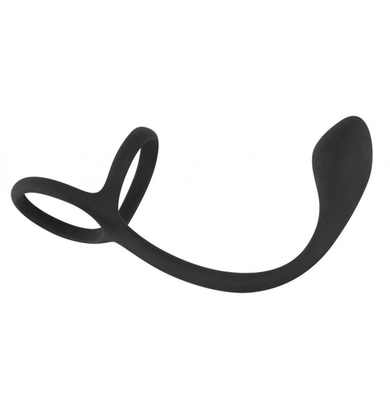 Эрекционное кольцо с утяжкой на мошонку и анальным плаг Black Velvets