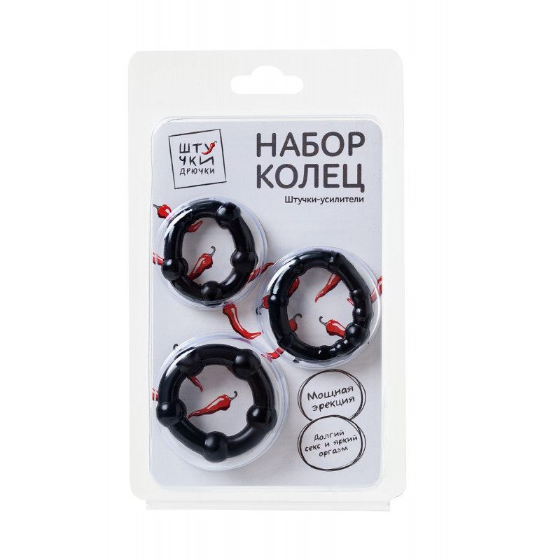 Набор из 3 черных силиконовых эрекционных колец разного размера