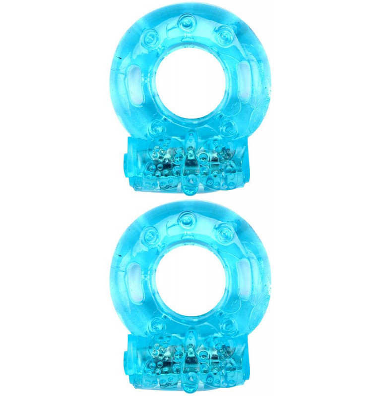 Набор из 2 голубых эрекционных виброколец. Име.т яркий рельеф и вибропулю в верхней части для клиторальной стимуляции. Также кольцо можно перевернуть для дополнительной стимуляции мошонки. Внутренний диаметр - 1,7 см.