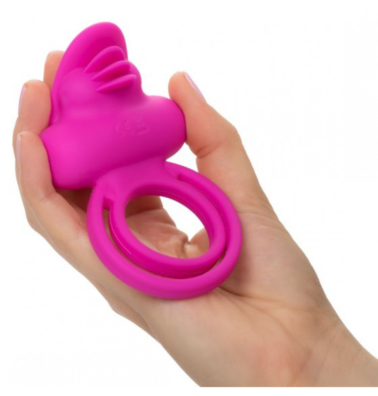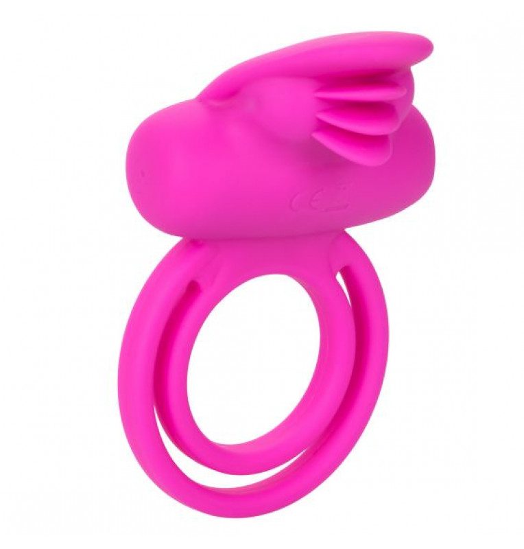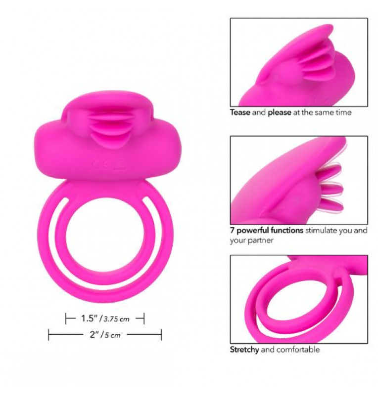 Ярко-розовое эрекционное кольцо Silicone Rechargeable Dual Clit Flicker