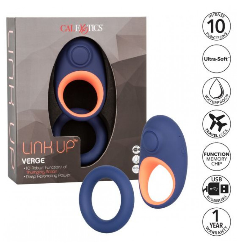 Набор эрекционных колец Link Up Max – двойное стимулирующее кольцо доставляет интенсивное удовольствие с 10 мощными функциями вибрации, дополнительным поддерживающим кольцом Ultra-Soft и дразнящей ребристой текстурой. Оно изготовлено из гладкого, шелковистого на ощупь, безопасного для здоровья медицинского силикона. Кольцо препятствует оттоку крови для поддержания эрекции и замедляя процесс эякуляции. Оно имеет уникальную ребристую форму обеспечивающую дополнительную стимуляцию клитора или яичек во время полового акта. Бархатистая поверхность обеспечит максимально нежные тактильные ощущения. Управление осуществляется с помощью всего одной кнопки в головке. Для переключения скорости достаточно всего одного нажатия. Кольцо заряжается через специальный аккумуляторный USB кабель и может быть подключено практически в любом месте. Просто подсоедините идущий в комплекте шнур к изделию и совместимому порту компьютера или USB-адаптера (приобретается отдельно). Полная зарядка занимает 2,5 часа, ее достаточно для беспрерывной работы до 1,5 часа высокоинтенсивной вибрации. Внутренний диаметр колец - 3,75 см.