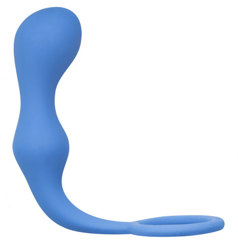 Синее эрекционное кольцо с анальной пробкой Double Pleasure Anal Plug